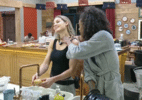 Saory aparece com chupão no pescoço e tenta disfarçar