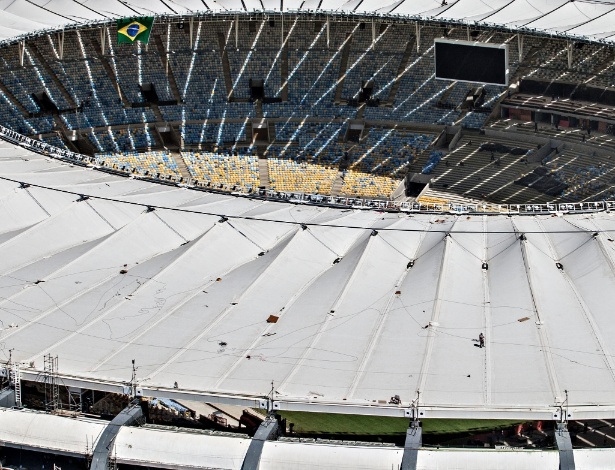 - Cobertura do Maracanã em trabalho de acabamento dias antes da reabertura do estádio Júlio César Guimarães/UOL Mais
