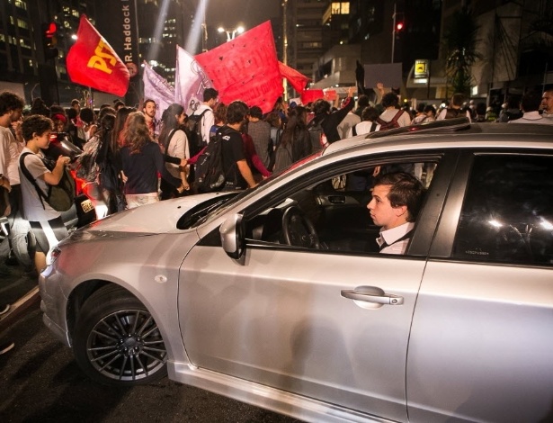 - 27.03.14 - Motorista tenta fazer retorno durante manifestação contra a Copa em São Paulo Rodrigo Capote/UOL Mais