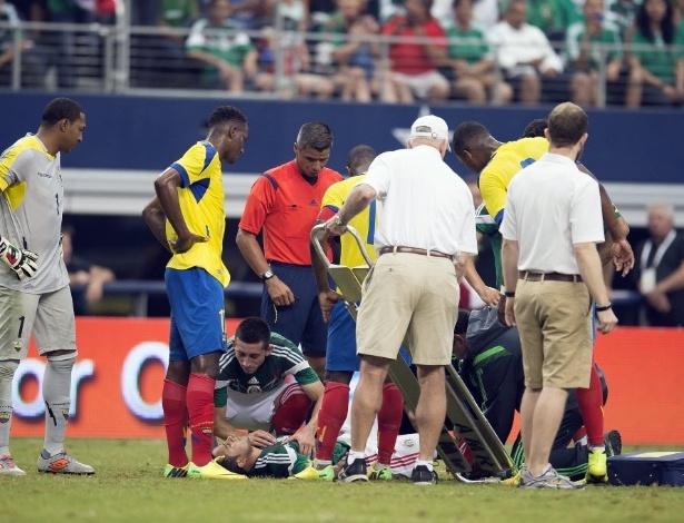 - Mexicano Luis Montes se lesiona gravemente após choque com Segundo Castillo, do Equador Tony Gutierrez/AP Photo Mais