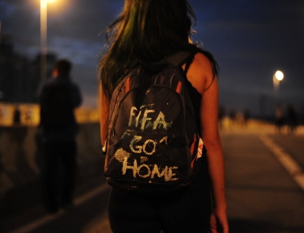 Manifestante manda recado para a Fifa durante protesto contra a Copa do Mundo, em São Paulo Junior Lago/UOL Mais