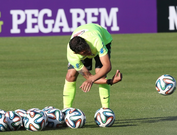 - 04.06.14 - Thiago Silva brinca com bola no início das atividades na Granja Comary MÁRIO FARACHE/ MOWA PRESS Mais