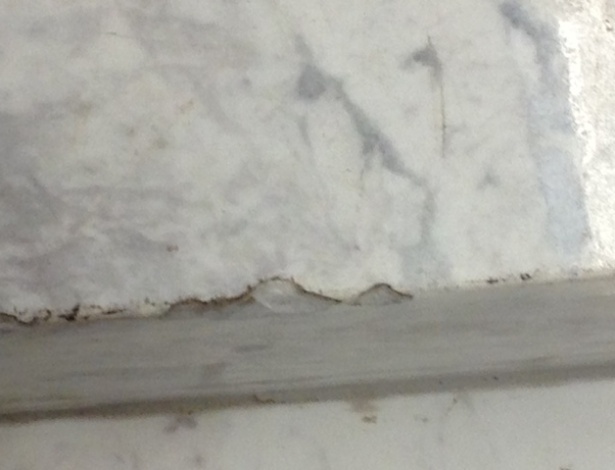 - 04.06.14 - Marca deixada por adesivo que ficou grudado em mármore do Itaquerão Rodrigo Mattos/UOL Mais