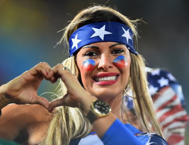 Torcedoras dos Estados Unidos esperam o início da partida contra a Bélgica, na Fonte Nova, em Salvador AFP PHOTO / ADRIAN DENNIS Mais