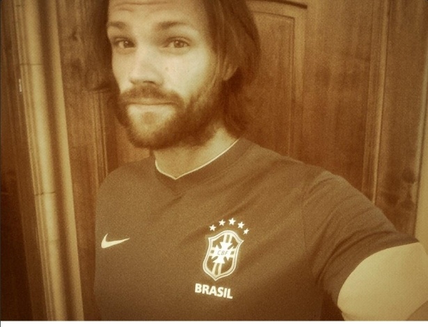 - Ator Leonardo di Caprio usa bandeira do Brasil no jogo de abertura da Copa do Mundo. A imagem foi registrada pela jornalista Alecsandra Zapparoli, diretora da redação da Veja SP Reprodução/Twitter Mais