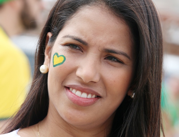 - Torcedora pinta coração com as cores do Brasil para apoiar a seleção contra o México Flavio Florido/UOL Mais