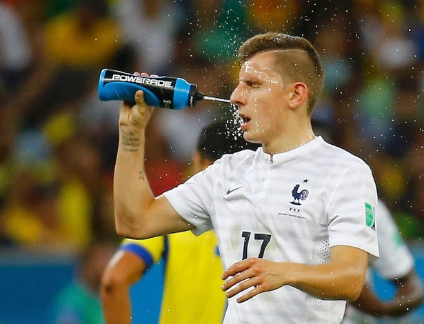 - Francês Lucas Digne se refresca no calor do Rio de Janeiro durante a partida contra o Equador REUTERS/Kai Pfaffenbach Mais