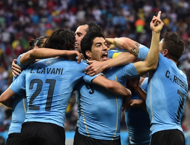 - Os uruguaios chegaram sob desconfiança e estrearam com derrota para a surpresa Costa Rica. Mas sob o comando de Luis Suárez se recuperaram e avançaram bem para as oitavas. Só que o astro da seleção foi suspenso após morder o italiano Chiellini e desfalcará a celeste no restante da Copa AFP PHOTO / BEN STANSALL Mais