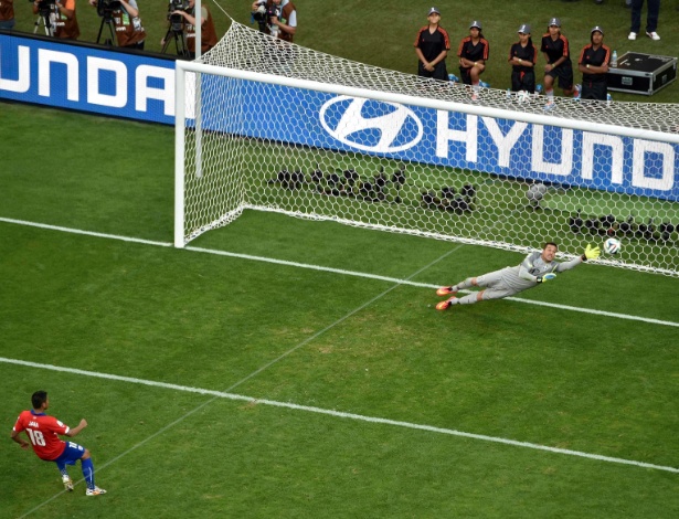 - Júlio César defende cobrança de pênalti do Chile pelas oitavas de final da Copa, no Mineirão Jefferson Bernardes/VIPCOMM Mais