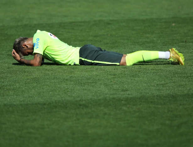 - Neymar deita de bruços no gramado da Granja Comary durante treino da seleção brasileira Heuler Andrey/ Mowa Press Mais