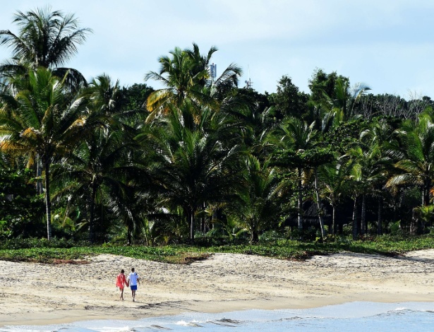 - Andre Schuerrle, atacante da Alemanha, caminha de mãos dadas com a sua namorada na bela praia da Vila da Santo André, na Bahia AFP PHOTO / PATRIK STOLLARZ Mais