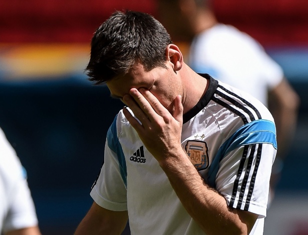 - Messi coça o olho durante treino da equipe argentina, em Brasília Xinhua/Liu Dawei Mais
