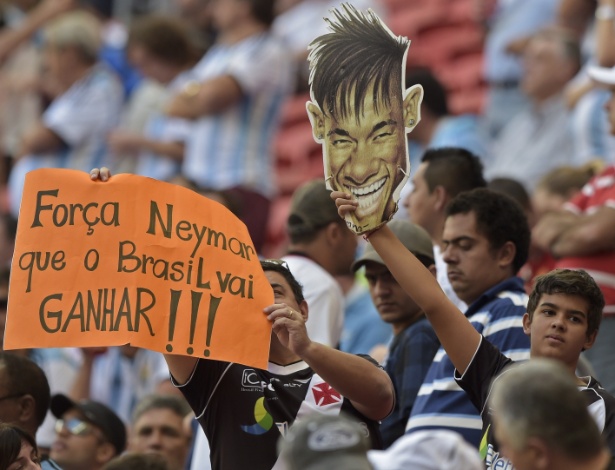 - Torcedor exibe cartaz com mensagem de apoio a Neymar durante partida entre Argentina e Bélgica REUTERS/Dominic Ebenbichler Mais