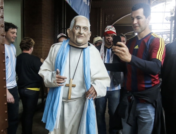 - Torcedor argentino fantasiado de Papa Francisco caminha por estação de metrô, em São Paulo, antes de Holanda x Argentina, no Itaquerão AFP PHOTO/Miguel SCHINCARIOL Mais
