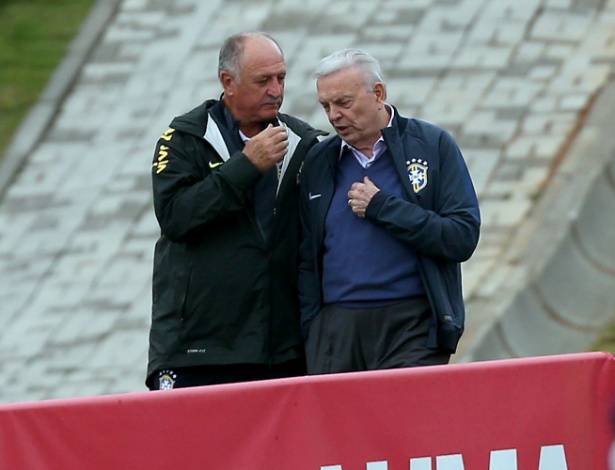 - Felipão conversa com presidente da CBF José Maria Marín durante treinamento da seleção brasileira na Cidade do Galo, em Vespasiano (MG) Moacyr Lopes Junior/Folhapress Mais