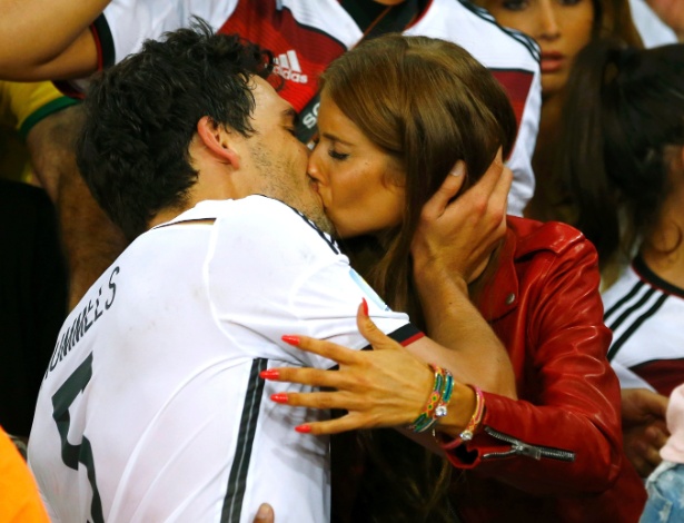 - Alemão Mats Hummels beija sua namorada Cathy Fischer após a vitória contra a Argentina na final da Copa do Mundo REUTERS/Darren Staples Mais