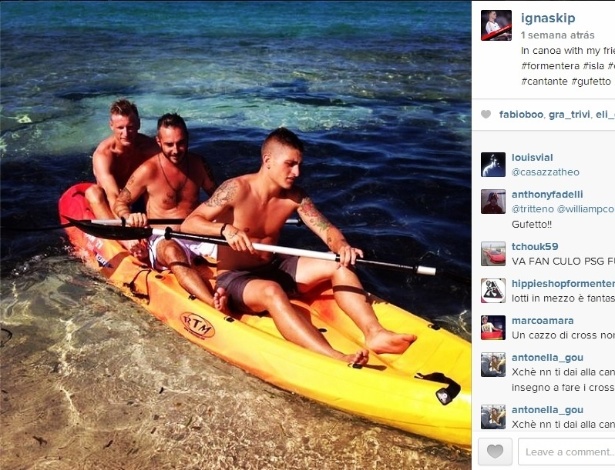 Italianos Abate e Verratti aproveitam férias de caiaque antes do início da temporada europeia Reprodução/Instagram Mais