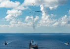 Os EUA divulgaram ontem novas imagens do grupo de ataque do porta-aviões USS Gerald R. Ford após a chegada da embarcação à América Latina. As fotos revelam o arsenal mais avançado da Marinha americana em operação na região.