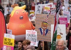 Milhares de pessoas marcharam por Londres nesta quarta-feira para protestar contra a visita de Estado do presidente dos Estados Unidos, Donald Trump, ao Reino Unido, enquanto um grupo bem menor se reuniu do lado de fora do Castelo Real de Windsor, a oeste da capital, para lhe dar as boas-vindas.