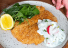 Milanesa com molho de iogurte é almoço perfeito que você faz em 20 minutos