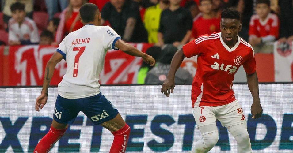 - Carbonero vai para cima de Ademir em Internacional x Bahia, pelo Brasileirão Ricardo Duarte/Internacional Mais
