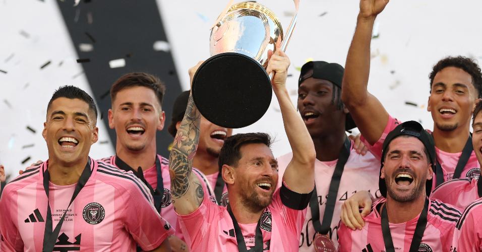 - Messi celebra gol pelo Inter Miami Andrew Katsampes/ISI Photos/Getty Images Mais