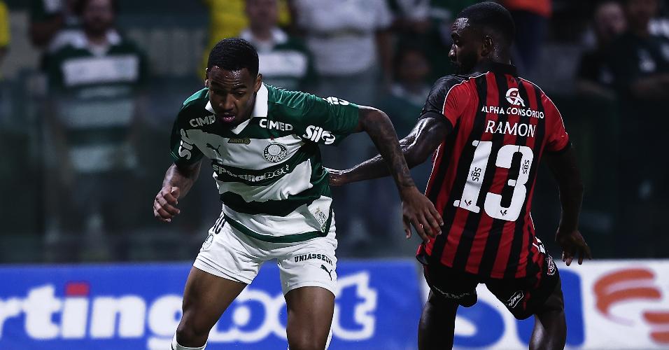- Vitor Roque, do Palmeiras, e Savarino, do Botafogo, dividem bola durante jogo do Brasileirão, no Allianz Parque Fabio Giannelli/AGIF Mais