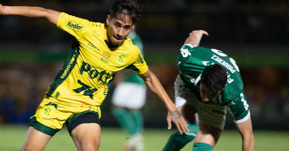 - Negueba e Piquerez disputam a bola em Mirassol x Palmeiras, pelo Brasileirão Joisel Amaral/AGIF Mais