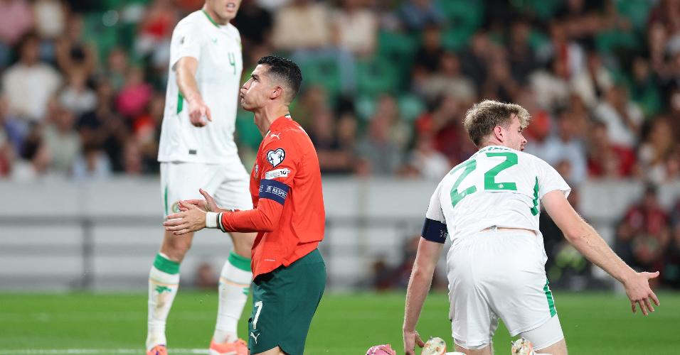 - Cristiano Ronaldo se lamenta após ter pênalti defendido por Kelleher no jogo entre Portugal e Irlanda, pelas eliminatórias europeias da Copa do Mundo Carlos Rodrigues/Getty Images Mais