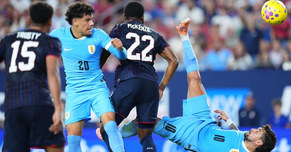 Em uma foto postada no Twitter da federação uruguaia, é possível ver a camisa de Suárez ao lado de outros jogadores que estão a disposição do técnico Óscar Tabárez. O craque não pode sequer acompanhar o jogo nas arquibancadas e por conta disso já voltou a seu país natal.